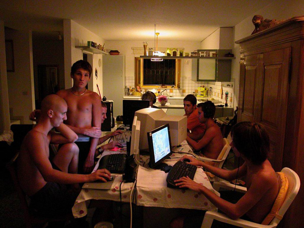 Per un periodo mi trovavo con gli amici per dei LAN party, si trattava di giocare ininterrottamente per un paio di giorni. Ci trovavamo in una decina di amici, ognuno con il proprio computer e li collegavamo assieme, in modo da creare la nostra rete per il gioco. Molte volte avveniva a casa mia, che si riempiva di cavi e di gente che dopo molte ore davanti allo schermo, crollava su divani e poltrone o anche per terra con un cuscino.
