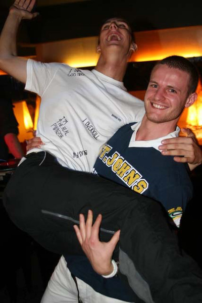 Non perdevo mai l’occasione per fare il buffone, alcune volte volontariamente ed alcune volte no, come quando cercando di fare il figo al bowling, ne è nato un lancio sbilenco con tanto di scivolata, scena che è poi finita su YouTube. Oppure come quando al Bar Castello sono inciampato con la birra in mano tirandomela addosso, immaginatevi le risate dei miei amici. Le mie battute poi erano mitiche…