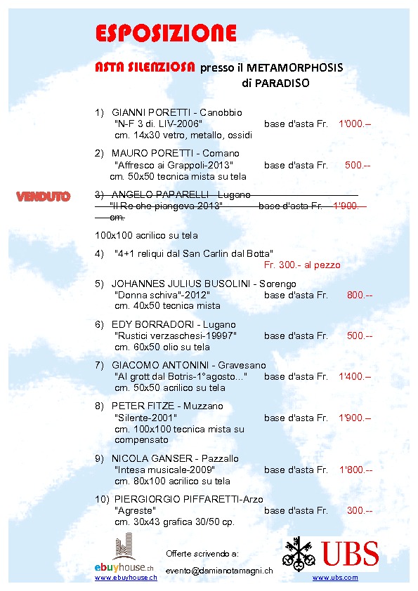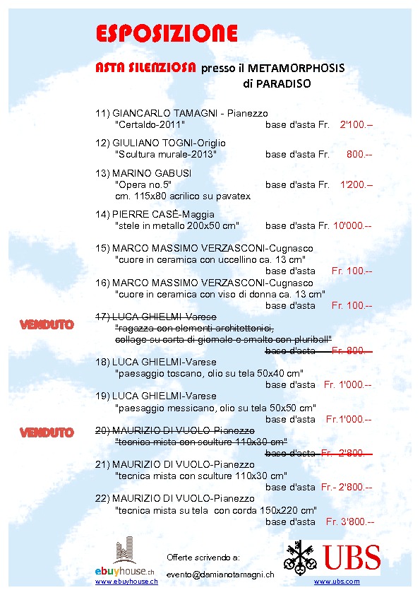Esposizione Asta silenziosa presso il Metamorphosis di Paradiso