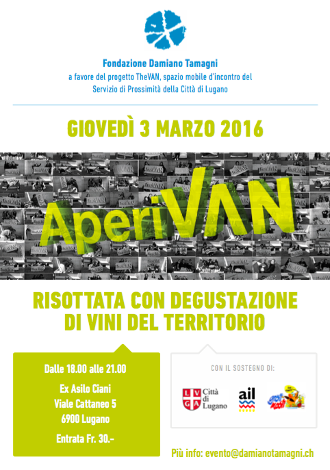 Giovedì 3 marzo 2016, dalle 18.00 alle 21.00, presso l’Ex Asilo Ciani, Viale Cattaneo 5m 6900 Lugano, Risottata con degustazione di vini del territorio.